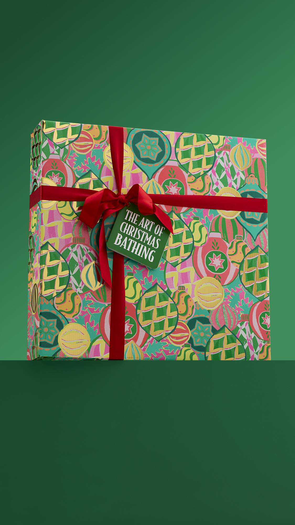 Worthy of any fancy-schmancy gallery, this Lush gift box has been lovingly designed by Lush Gift Designer, Shannon Lund who was “inspired by the vibrant traditional colors and patterns commonly found in Christmas decorations, capturing the joyful spirit and festive cheer of the holiday season.”